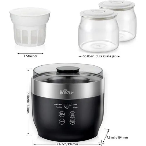Maquina Para Hacer Yogur Griego Bar Negro Con Colador Y Temporizador 1 Litro