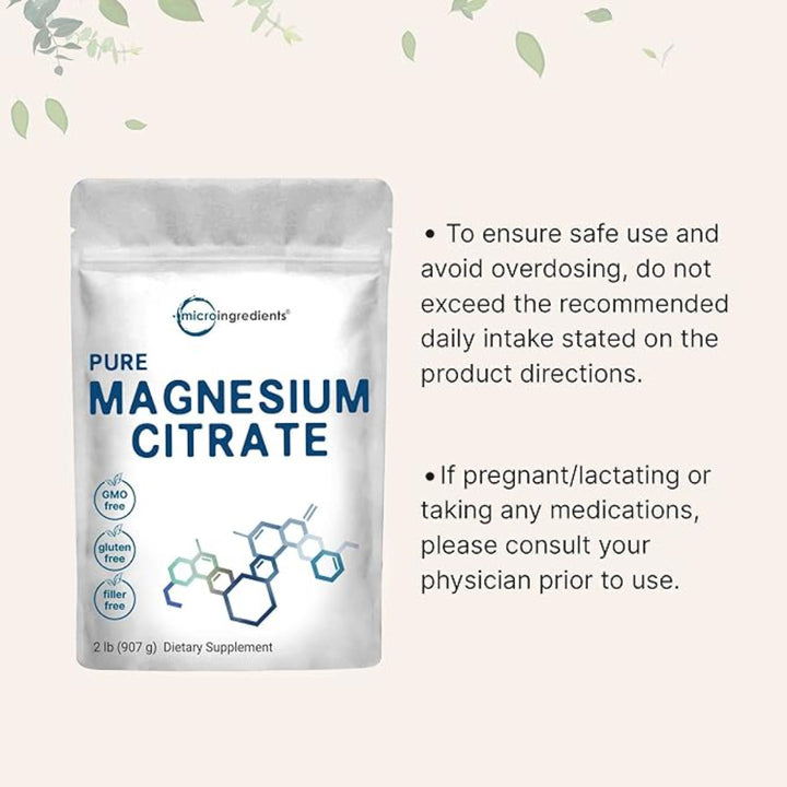 Citrato de Magnesio Puro 907g Suplemento Natural en Polvo para Salud Ósea y Muscular
