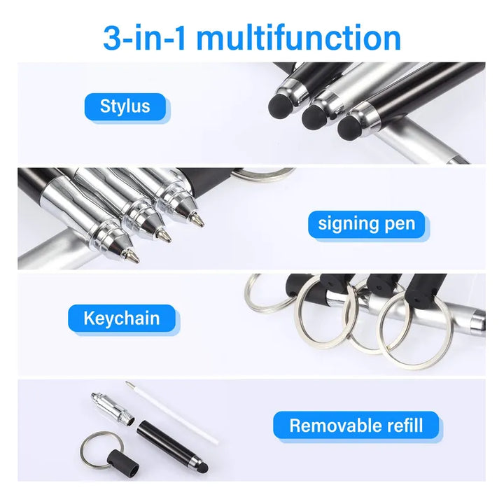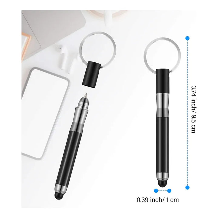 Gracias a su diseño multifunción, podrás tener un bolígrafo, un lápiz táctil y un llavero en un único dispositivo. No importa si necesitas firmar un documento con su bolígrafo integrado o anotar una idea rápida en tu tableta; este accesorio siempre estará listo para ayudarte.