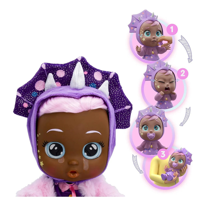 Imagina la sonrisa de tu pequeñ@ al abrir este regalo. La muñeca bebé Cry Babies Dressy Fantasy Phoebe no es un juguete cualquiera: llora lágrimas reales, hace sonidos de bebé auténticos y viste un outfit de ensueño con chaqueta rosa y vestido morado de lunares. ¡Cuidarla será su nueva aventura favorita!