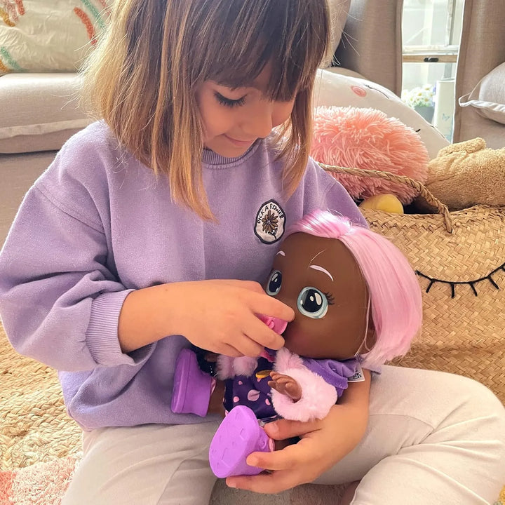 Phoebe cobra vida cuando retiras su chupete: llora lágrimas reales y emite sonidos de bebé. Al devolverle el chupete o acostarla, se calma al instante. ¡Así de fácil y mágico! Sus mecanismos sensibles responden a las acciones del niño, creando una experiencia interactiva única.