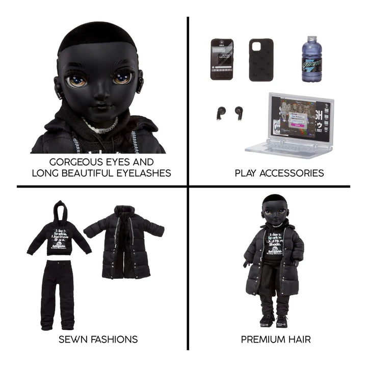 Muñeca Rainbow High Shadow High Rexx McQueen Negro Con Accesorios Y Articulaciones