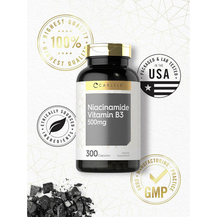 Niacinamida Vitamina B3 500 Mg 300 Cápsulas Carlyle Salud Piel Energía