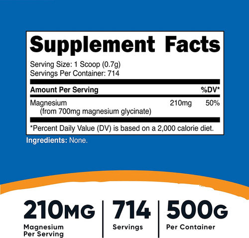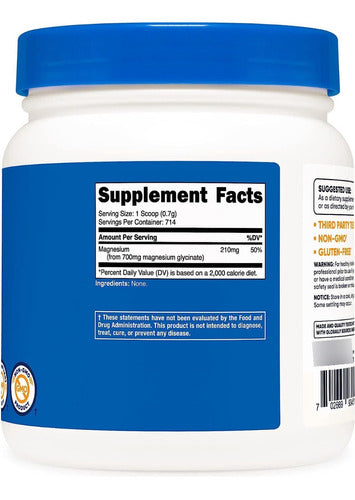 Nutricost Glicinato De Magnesio Puro Sin OGM Ni Gluten Apoyo Energía Natural