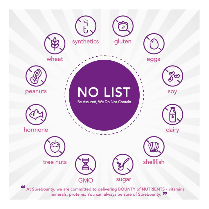 Imagina disfrutar de la seguridad de un producto libre de alérgenos, adecuado para cualquier rutina diaria, y respaldado por rigurosas pruebas de calidad y potencia. No hay espacio para ingredientes desagradables o artificiales en Surebounty. Cada cápsula está diseñada para encajar perfectamente en tu vida, proporcionándote los nutrientes y felicidad que buscas.
