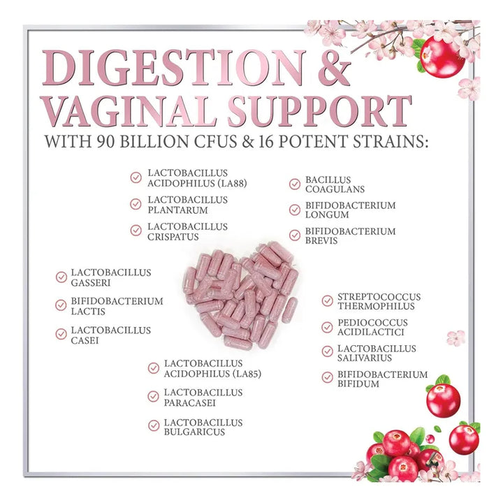 - Sofisticada mezcla de 16 cepas probióticas para la salud integral de la mujer 🌿.