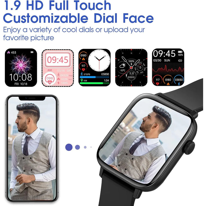 Imagina tener un asistente personal en tu muñeca, capaz de mantenerte conectado, saludable y organizado sin esfuerzo. Este reloj inteligente no solo es un accesorio elegante, sino una herramienta poderosa diseñada para simplificar tu vida y potenciar tu bienestar. Con su pantalla táctil HD de 1.9 pulgadas y más de 150 esferas personalizables, lucirás único mientras disfrutas de tecnología avanzada.