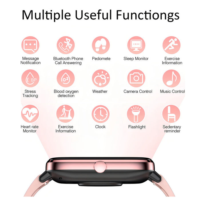 ¡Descubre la elegancia y funcionalidad del Reloj Inteligente Para Mujer que te acompaña a cada paso! 🌟 Este reloj está diseñado especialmente para mujeres que buscan un toque de estilo y funcionalidad en su vida diaria. Con una pantalla táctil completa a color de 1.69 pulgadas y resistente al agua IP67, este dispositivo es el complemento perfecto para cualquier ocasión.