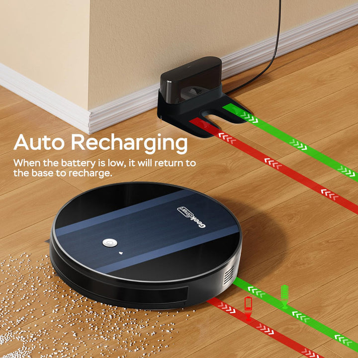 El Robot Aspirador Geek Smart G6 funciona valiéndose de su avanzada tecnología de detección de suelos y objetos. Puede recolectar eficientemente polvo, migajas y pelos, gracias a su potente succión y múltiples modos de limpieza. Utiliza sensores para evitar colisiones y caídas, ajustándose automáticamente a distintas superficies.