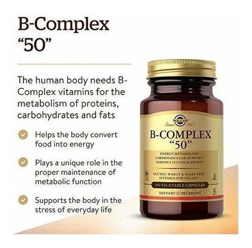 Solgar B-Complex 50mg 100 Cápsulas Energía Salud Cardiovascular Sistema Nervioso