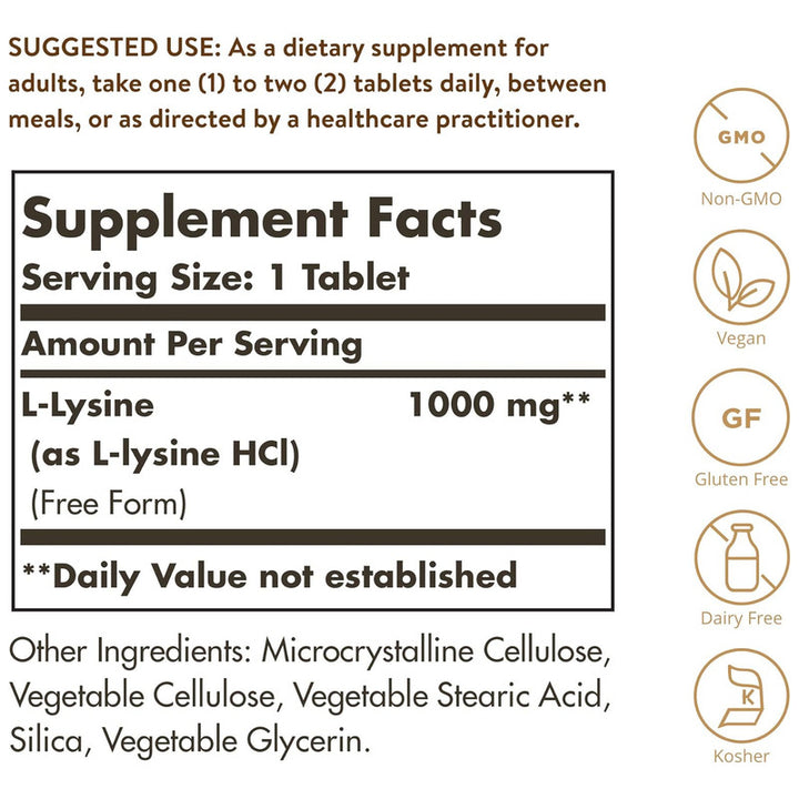 Solgar L Lisina 1000 Mg Vitamina Y Hierbas 100 Tabletas