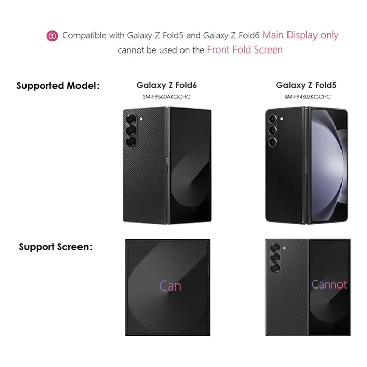 - Compatibilidad exclusiva con las pantallas plegables internas de 7.6 pulgadas de los Galaxy Z Fold 6 y 5.