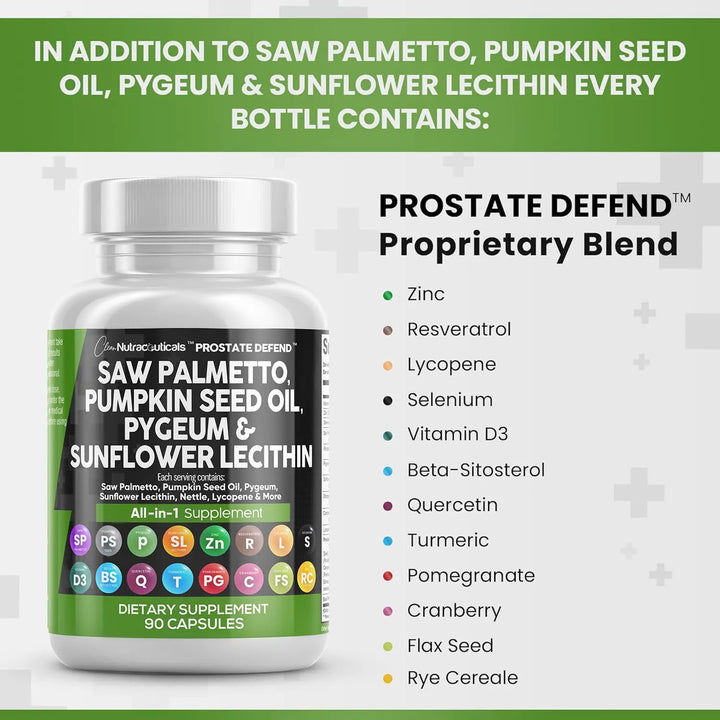 Suplemento Prostático Saw Palmetto Semilla Calabaza Pygeum Lecitina 90 Caps