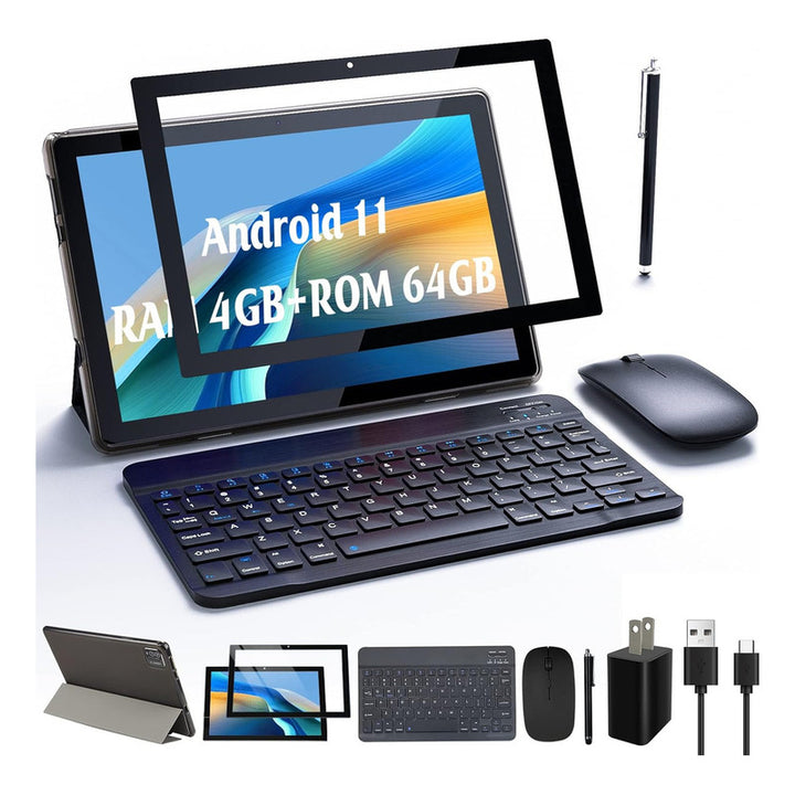 Tablet 10 Pulgadas 4GB RAM 64/512GB ROM Con Teclado Mouse Funda