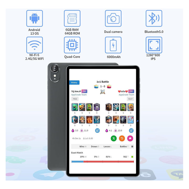 La pantalla IPS de 10.1 pulgadas trae colores vibrantes y detalles precisos que convertirán cualquier visualización en un evento asombroso. Es tu ventana a mundos de entretenimiento inimaginables. Pero esto no es todo, gracias a sus 6 GB de RAM, puedes ejecutar múltiples apps sin perder ni un segundo. Despídete de las fallas y dale la bienvenida a la eficiencia.