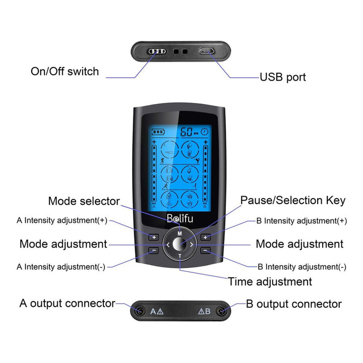 Tens Ems Estimulador Muscular Belifu 24 Modos Con 10 Almohadillas