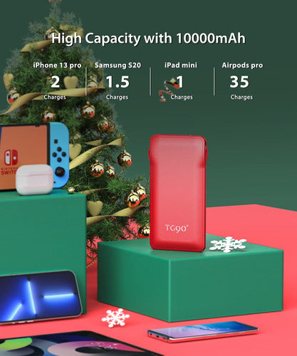 Cargador Portatil Tg90 Cables Incorporados 10000mah Alta Velocidad