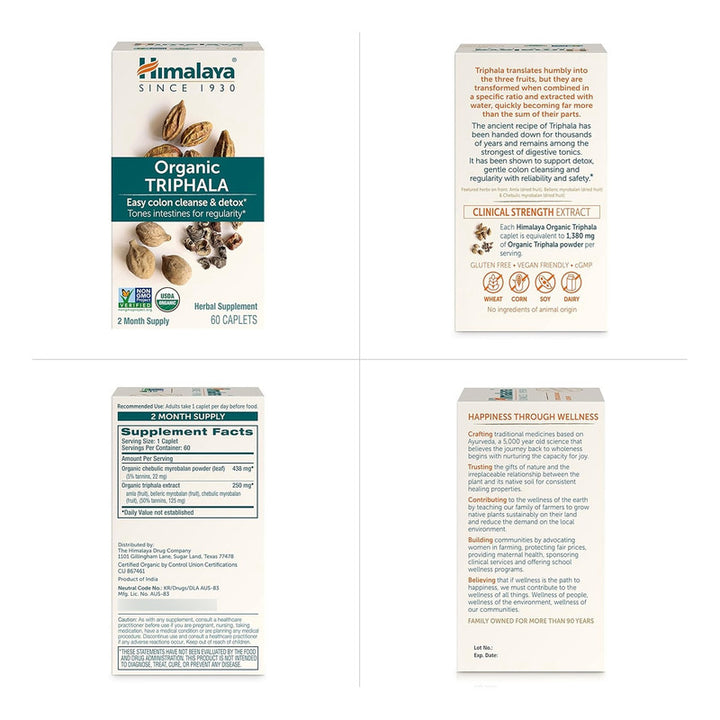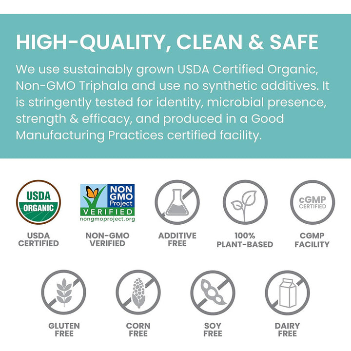 A diferencia de otros productos, el Triphala Orgánico Himalaya está certificado por USDA, libre de OMG y sin gluten, asegurando que ofreces a tu cuerpo solo lo mejor. Estos aspectos, acompañados de la confianza que ofrece una marca familiar con más de 90 años de experiencia, garantizan que este es un producto en el que puedes poner tu fe.