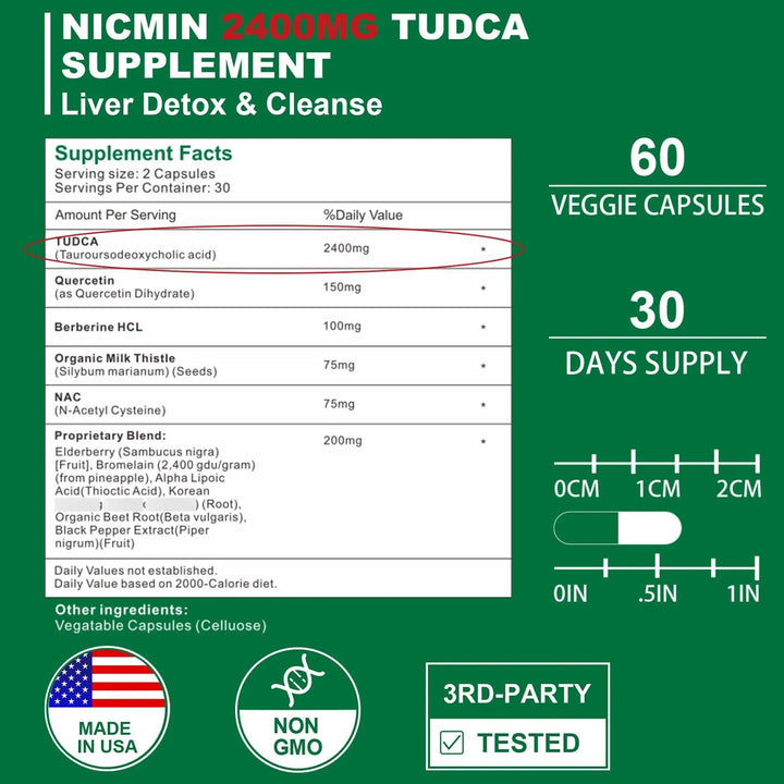 TUDCA 2400MG Suplemento Sales Biliares Detox Hepático Y Digestivo 60 Cápsulas
