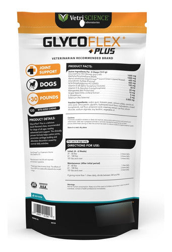 La fórmula avanzada del GlycoFlex Plus proporciona el soporte articular óptimo que tu perro merece. Cada masticable está enriquecido con ingredientes seleccionados meticulosamente para maximizar los beneficios en la salud articular de tu amigo canino. No solo trata los síntomas, sino que va un paso más allá en la prevención, dándole al cuerpo de tu perro las herramientas necesarias para fortalecer y proteger sus articulaciones.