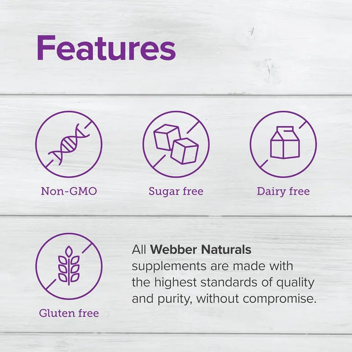 El compromiso de Webber Naturals con la calidad es inigualable. Desde nuestras granjas, donde todo empieza, hasta el producto terminado, cada etapa es controlada cuidadosamente para asegurar la pureza y eficacia de cada cápsula. Es tiempo de centrarte en lo que realmente importa: tu salud y bienestar. 🌟