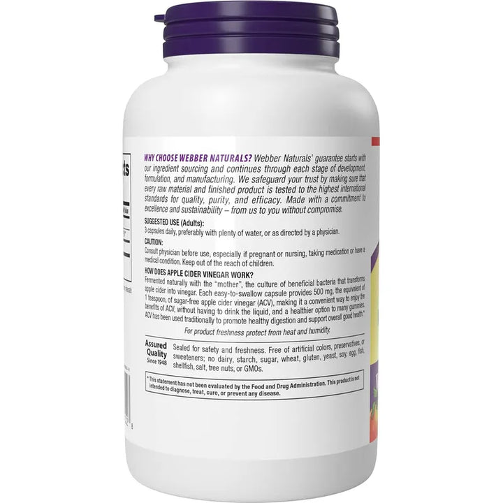 Imagina mejorar tu salud digestiva y metabólica sin el sabor fuerte del vinagre. El Vinagre de Sidra de Manzana Webber Naturals combina tradición y ciencia para ofrecerte una fórmula concentrada en una cápsula fácil de tomar. 🌿