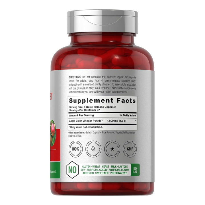 Este suplemento avanzado ofrece una dosis concentrada de 1800 mg de vinagre de sidra de manzana en una cápsula de liberación rápida, lo que significa que obtienes todos los beneficios que tu cuerpo necesita cuando los necesita. Sin complicaciones.