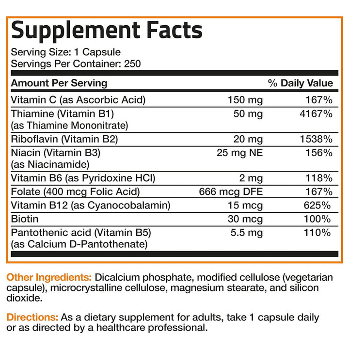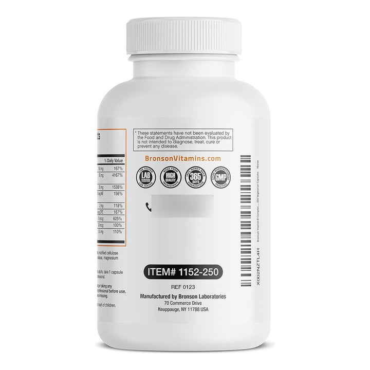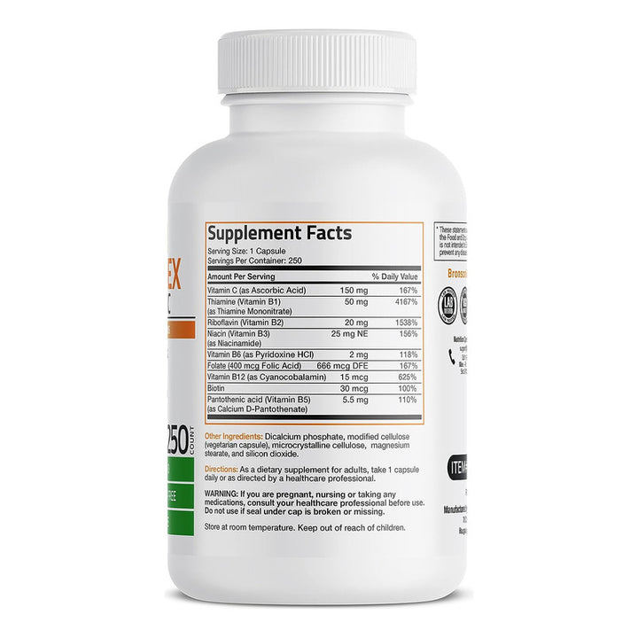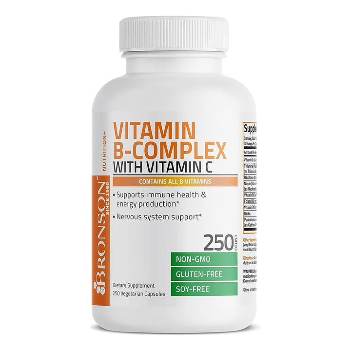 Vitamina B Complex Con Vitamina C Bronson 250 Capsulas Vegetarianas Sin OMG