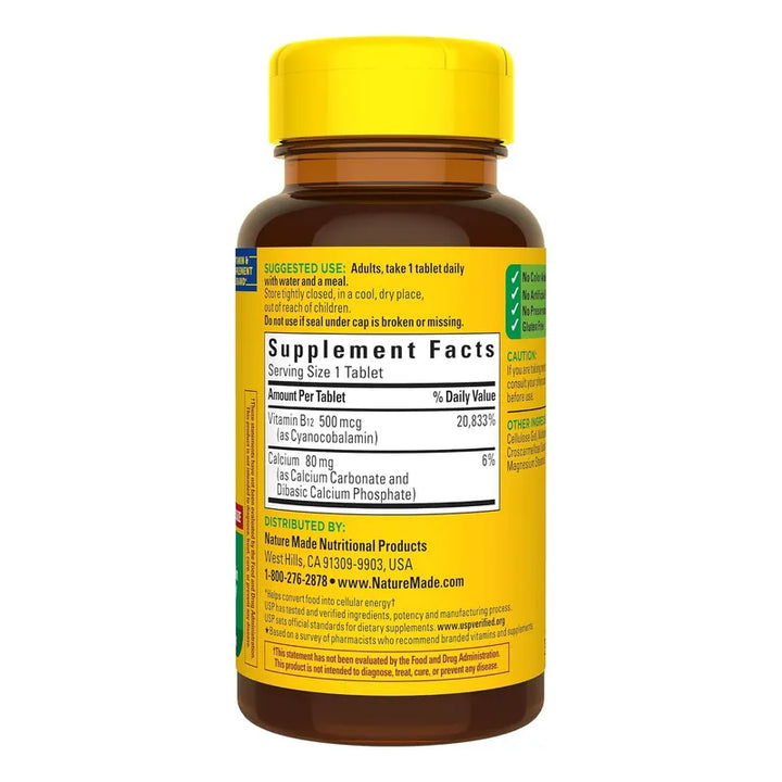 Vitamina B12 500 Mcg 200 Tabletas Nature Made Suplemento Energético
