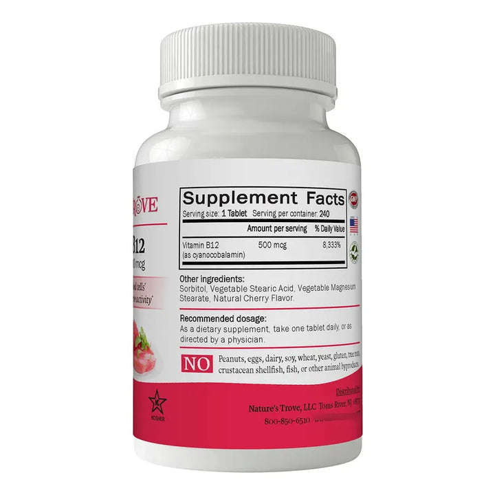 Vitamina B12 500 Mcg 240 Tabletas Masticables Sabor Cereza