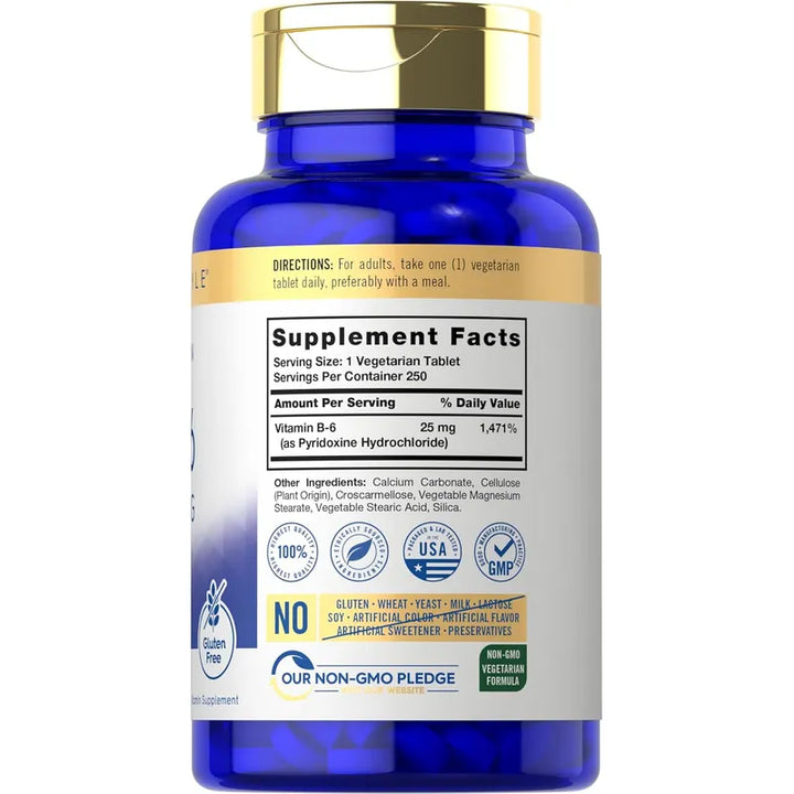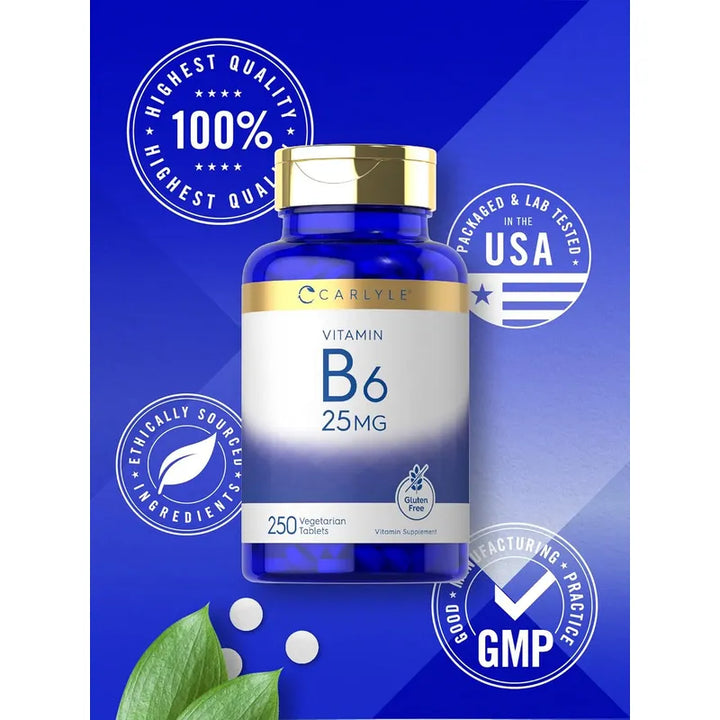 Vitamina B6 Carlyle 25mg 250 Tabletas Energía Vegetariana