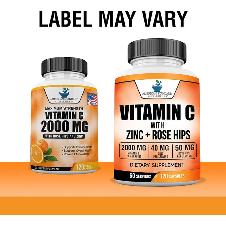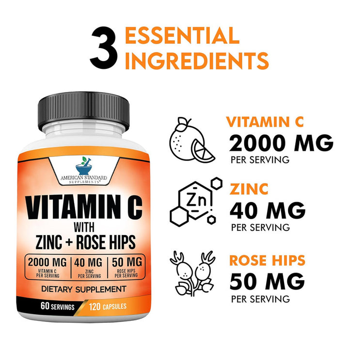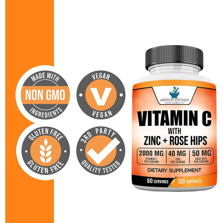 Vitamina C 2000 Mg Con Zinc Y Rose Hips Apoyo Inmunológico En Cápsulas Veganas