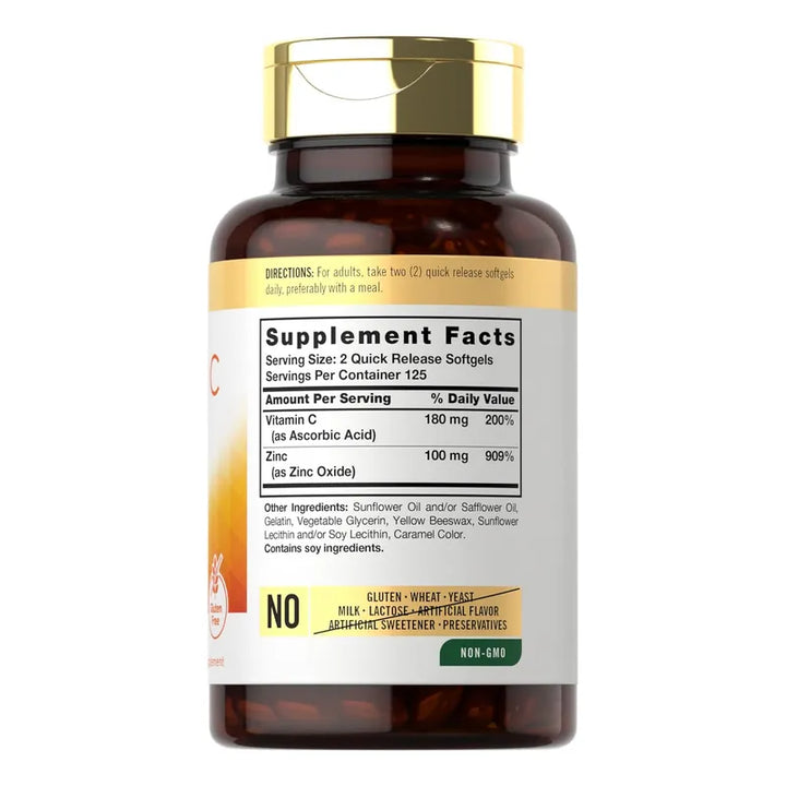 Nuestra vitamina C con zinc actúa sinérgicamente para fortalecer tus defensas y mejorar la absorción de nutrientes esenciales. Las cápsulas blandas aseguran que el cuerpo asimile rápidamente la vitamina C y el zinc, optimizando la respuesta inmunológica y promoviendo el bienestar general.