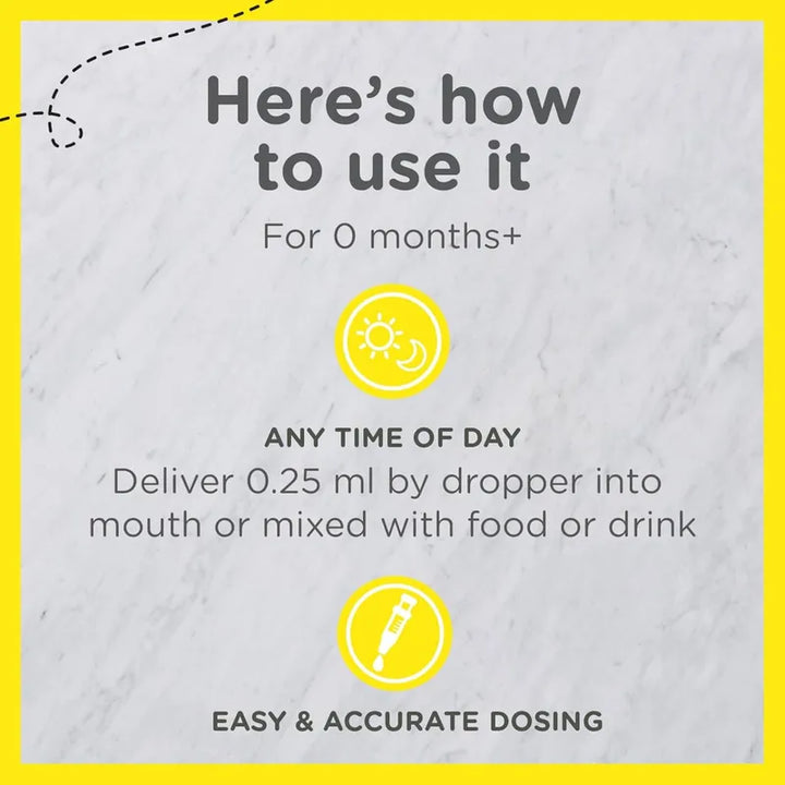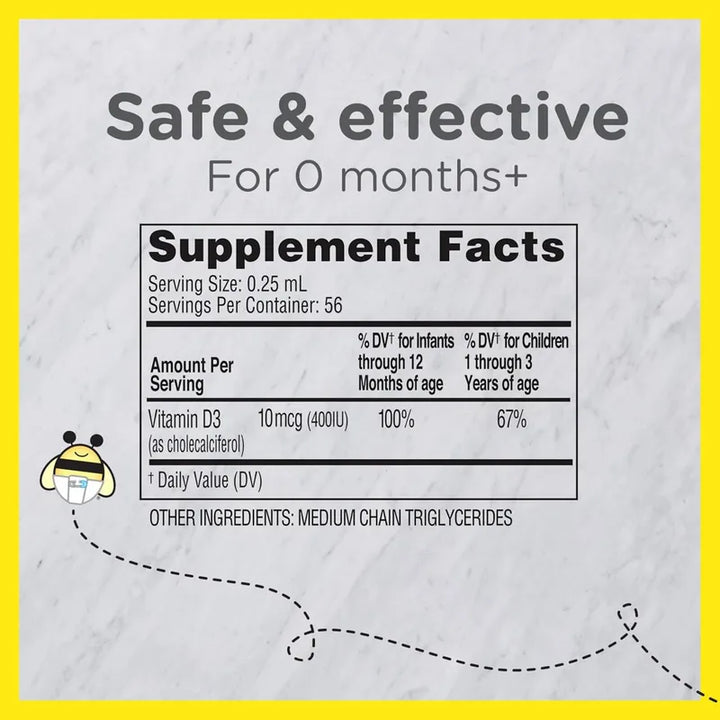 En un mundo lleno de desafíos de salud, proporcionar a tu bebé el nivel adecuado de vitamina D es vital. La Academia Americana de Pediatría lo recomienda para asegurarte de que tu bebé, especialmente si es amamantado, reciba toda la nutrición que necesita. Evita las preocupaciones sobre la falta de sol y los niveles bajos de vitamina D: asegúrate de que tu hijo está recibiendo el mejor comienzo posible.