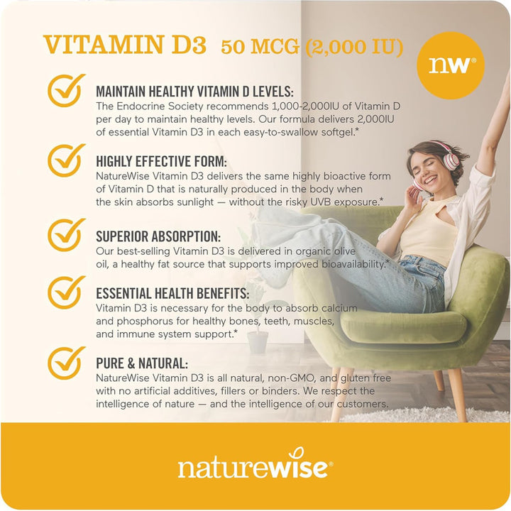 Vitamina D3 2000iu Naturewise Saludo Muscular Y Oseo